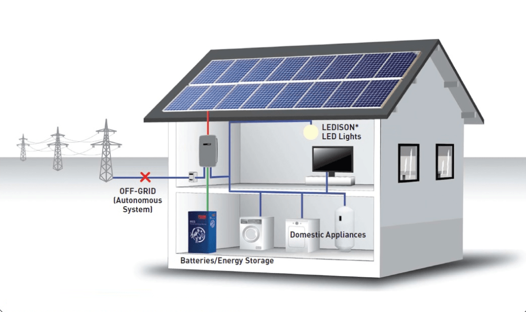 Exactly as the name suggests, Off-Grid systems are totally independent of the power grid. Although this sound ideal, it is expensive. You need to be sure that your system can supply 100% or more of the power you need. Furthermore, you need to invest in an energy storage solution. Basically, a big battery bank. You will need to over-cater PV panels, to ensure that even on the darkest of days you have enough power. But if you can afford it, an Off-Grid system is great!